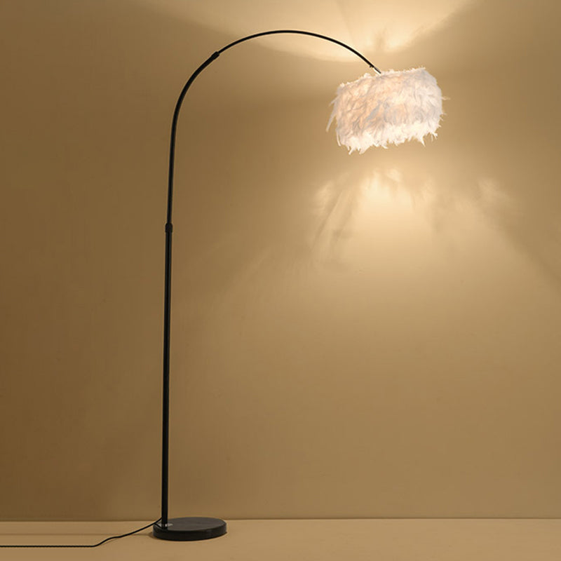 Feather Drum Stand Up Lamp Simplicity 1 Bulb Floor Lighting with Arc Arm for Living Room Clearhalo 'Floor Lamps' 'Lamps' Lighting' 2196997