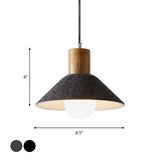 Felt Black/Grey Hanging Light Fixture Conical 1 Head Warehouse Pendant with Wooden Cap for Dining Room Clearhalo 'Art Deco Pendants' 'Black' 'Cast Iron' 'Ceiling Lights' 'Ceramic' 'Crystal' 'Industrial Pendants' 'Industrial' 'Metal' 'Middle Century Pendants' 'Pendant Lights' 'Pendants' 'Rustic Pendants' 'Tiffany' Lighting' 2181866