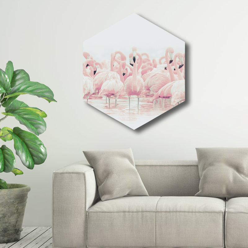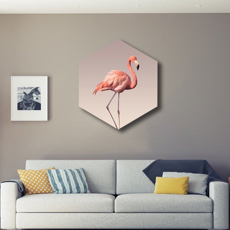 Impression sur toile Flamingo, photographie d'intérieur de maison, art mural d'animaux tropicaux en rose, texturé