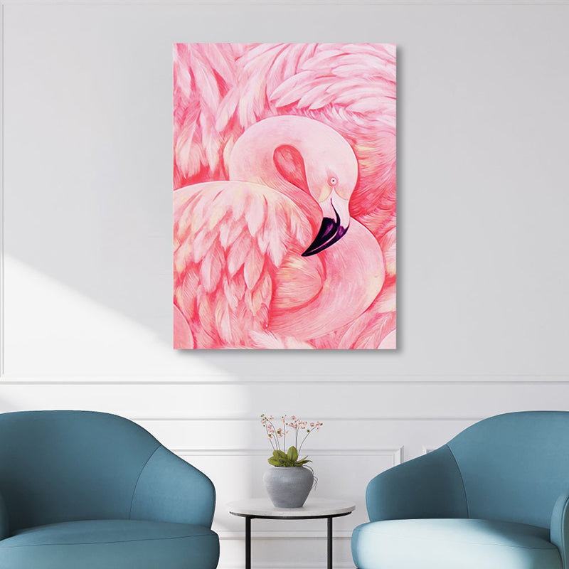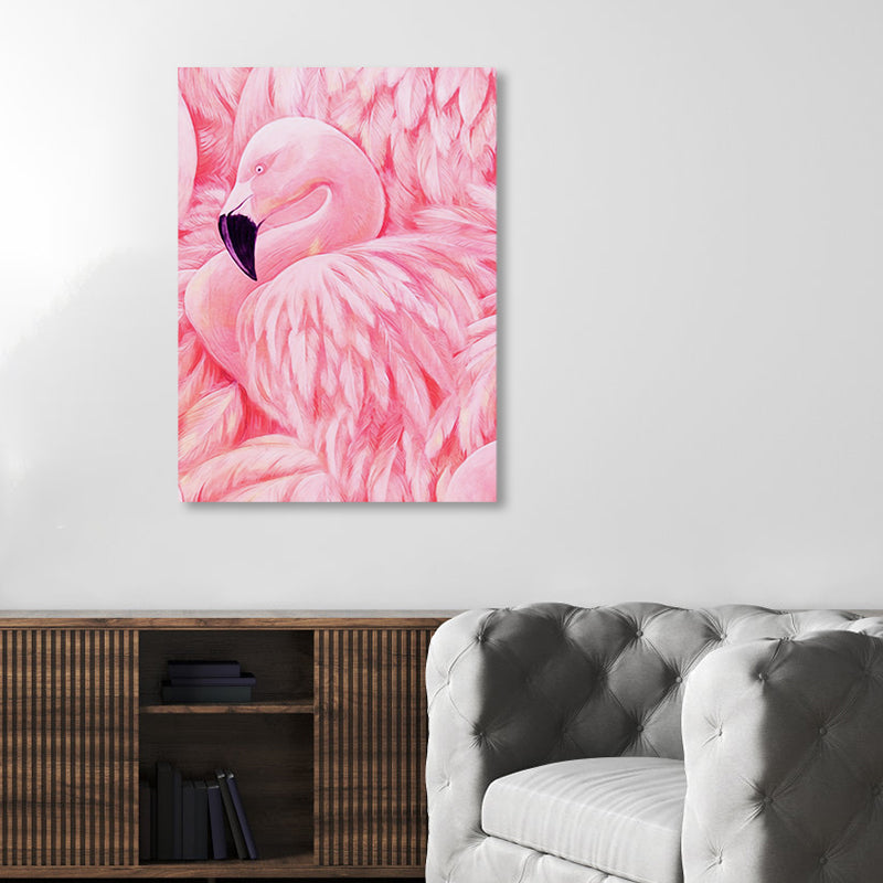 Flamingo Canvas Print Tropical Style Textured Wall Art Decor in Pink for Family Room Clearhalo 'Art Gallery' 'Canvas Art' 'Coastal Art Gallery' 'Tropical' Arts' 1858303