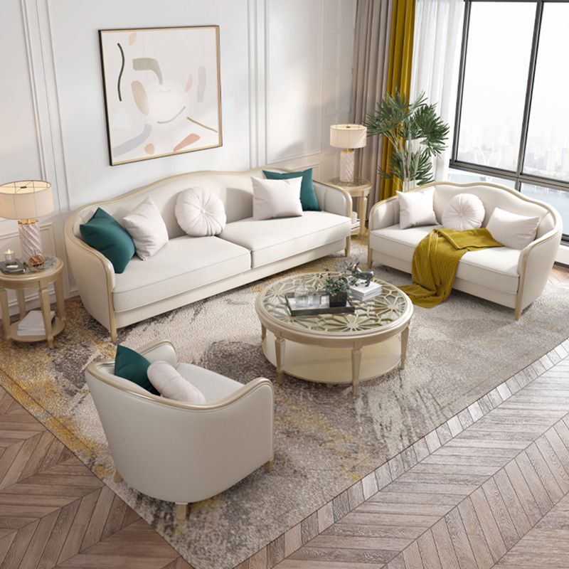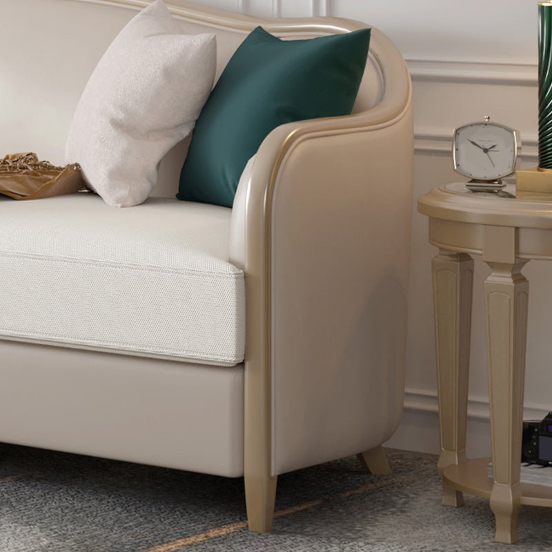 Canapé de faux cuir français avec pouf inclus dans le bois