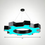 Gear Conference Room LED Ceiling Lighting Acrylic Modern Chandelier Light Fixture in Black Black 16" Blue Clearhalo 'Ceiling Lights' 'Chandeliers' 'Modern Chandeliers' 'Modern' Lighting' 2255189