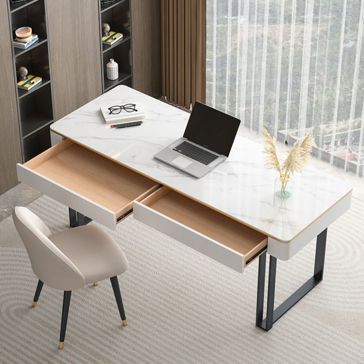 Bureau de bureau glamour antique Ordinateur Courbe courbe avec 2 tiroirs de rangement
