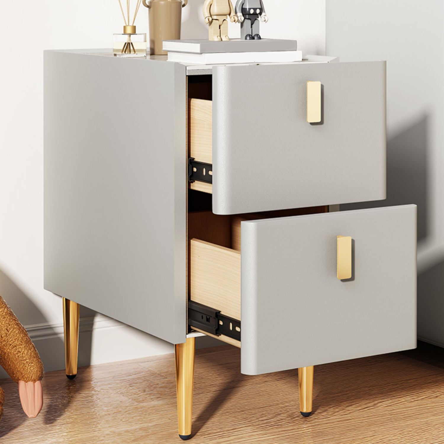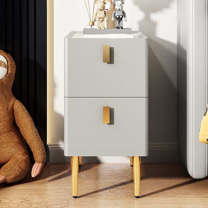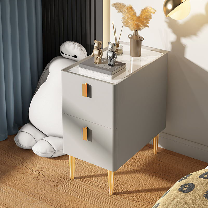 Glam Glam Rectangular Stone Top Night Table Table Cuir de 2 Drawer Tablette de nuit avec 4 jambes