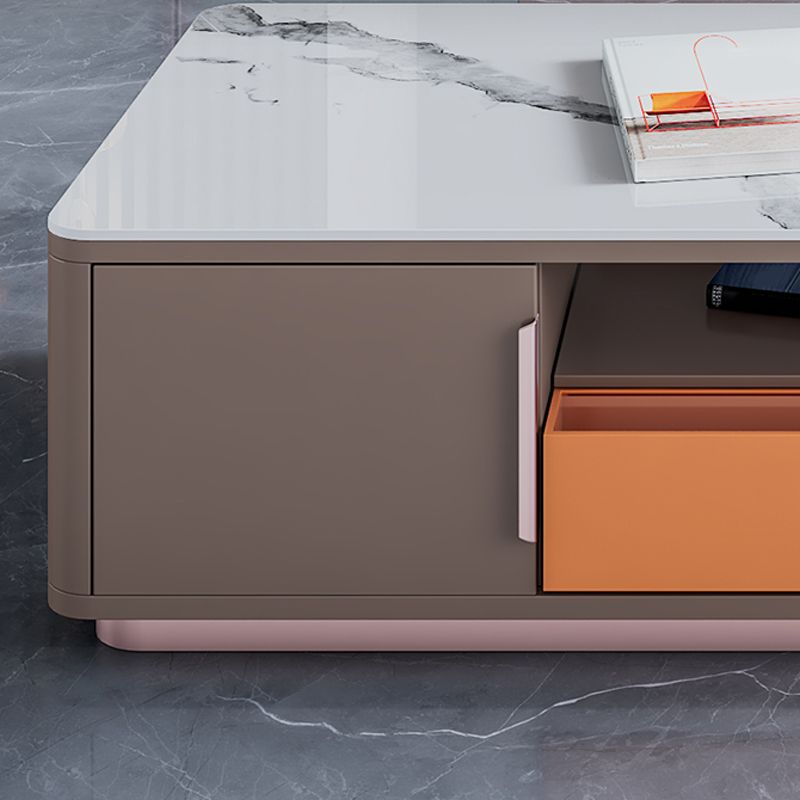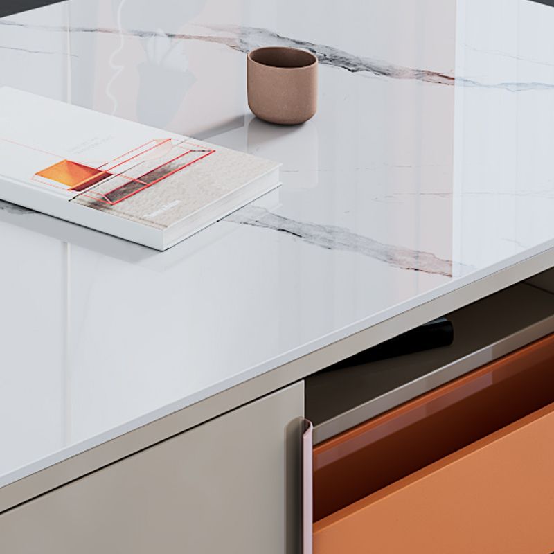 Glam Stone TV Media Open Rangement Media Console en blanc avec stockage