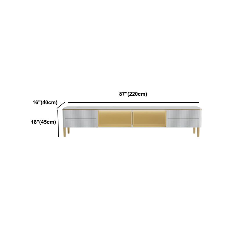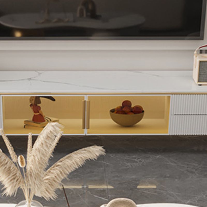 Glam Style Stone TV Stand White Color Console TV de stockage fermé avec 2 dessins