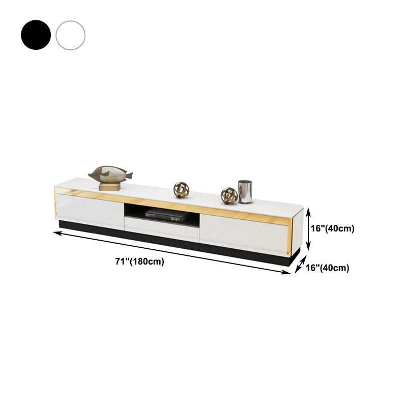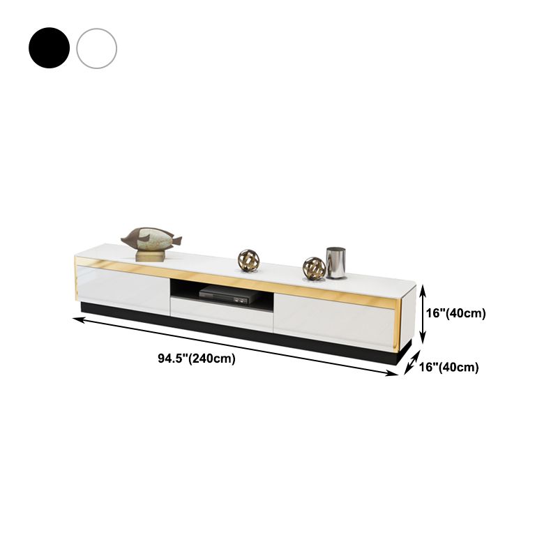 Glam TV Media Stand avec des tiroirs et une console de média TV en verre en bois