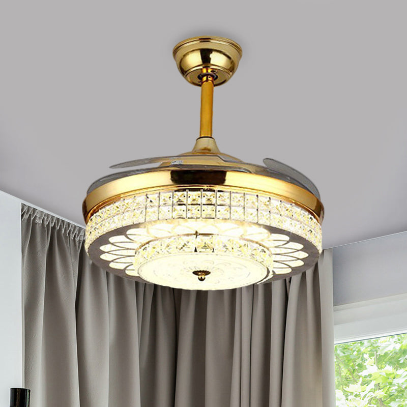 Gold Finish 42" Wide LED Semi Flush Contemporary Clear Crystal Blocks Drum Ceiling Fan Light with 3 Blades Clearhalo 'Ceiling Fans with Lights' 'Ceiling Fans' 'Modern Ceiling Fans' 'Modern' Lighting' 1426829