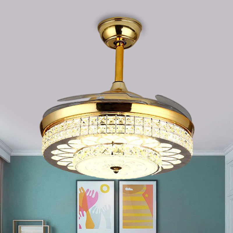 Finition dorée 42" de large LED semi-encastré contemporain blocs de cristal clair tambour ventilateur de plafond lumière avec 3 pales