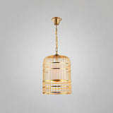 Lampe suspendue en forme de cage à oiseaux plaquée or, plafonnier de restaurant en métal à 1 ampoule avec abat-jour conique