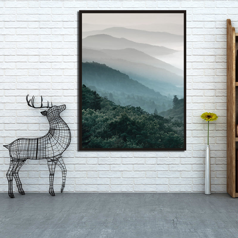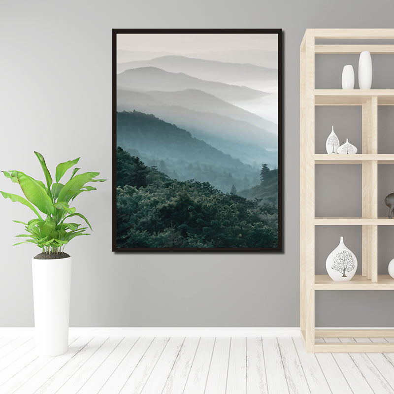 Impression sur toile de salon de style minimaliste texturé d'art mural de paysage de montagne verte