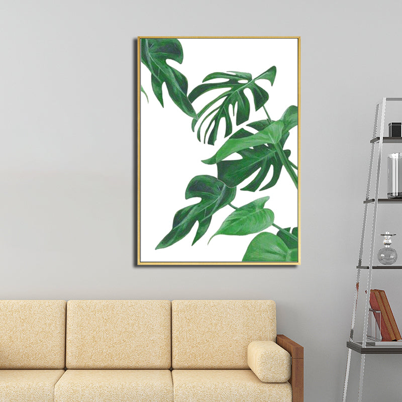 Toile d'art mural tropical vert avec feuilles de plantes pour le salon, surface texturée