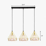 Industrial Diamond Cage Multi Light Pendant 3 Heads Iron Hanging Lighting for Dining Room Gold Linear Clearhalo 'Art Deco Pendants' 'Black' 'Cast Iron' 'Ceiling Lights' 'Ceramic' 'Crystal' 'Industrial Pendants' 'Industrial' 'Metal' 'Middle Century Pendants' 'Pendant Lights' 'Pendants' 'Rustic Pendants' 'Tiffany' Lighting' 2241457