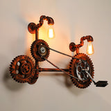 Industrial Pipe Wall Mount Light 2 Heads Wrought Iron Wall Sconce Lighting in Rust Rust Bicycle Clearhalo 'Art deco wall lights' 'Cast Iron' 'Glass' 'Industrial wall lights' 'Industrial' 'Middle century wall lights' 'Modern' 'Rustic wall lights' 'Tiffany' 'Traditional wall lights' 'Wall Lamps & Sconces' 'Wall Lights' Lighting' 2289771