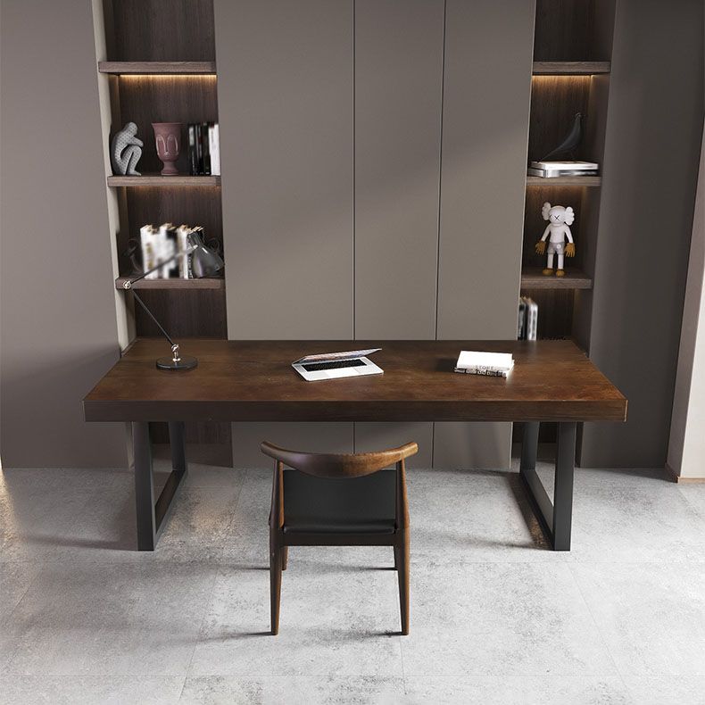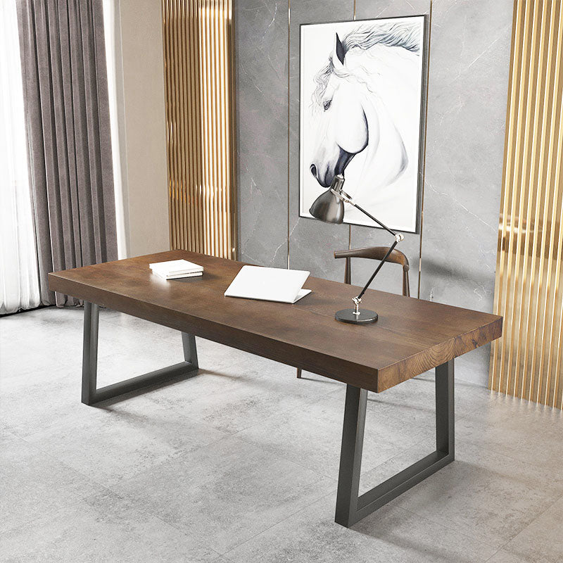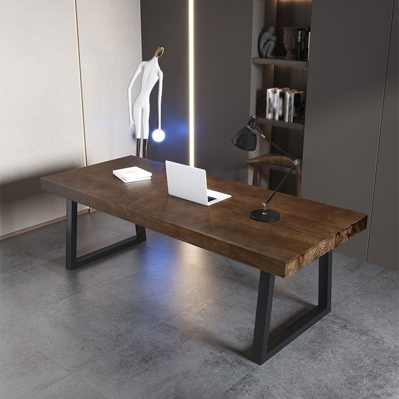 Bureau d'écriture rectangulaire industriel bureau de bureau en bois massif avec jambes noires