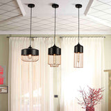 Lampe suspendue en forme de cage géométrique en fer, luminaire suspendu antique à 1 lumière pour salle à manger, noir