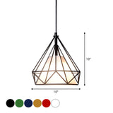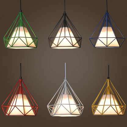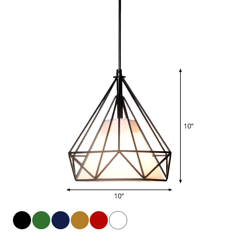 Loft Diamond Ceiling Hang Lamp 1 Head Iron Pendant Lighting in Black/White/Green with Cone Fabric Shade Inside Clearhalo 'Art Deco Pendants' 'Black' 'Cast Iron' 'Ceiling Lights' 'Ceramic' 'Crystal' 'Industrial Pendants' 'Industrial' 'Metal' 'Middle Century Pendants' 'Pendant Lights' 'Pendants' 'Rustic Pendants' 'Tiffany' Lighting' 1969073