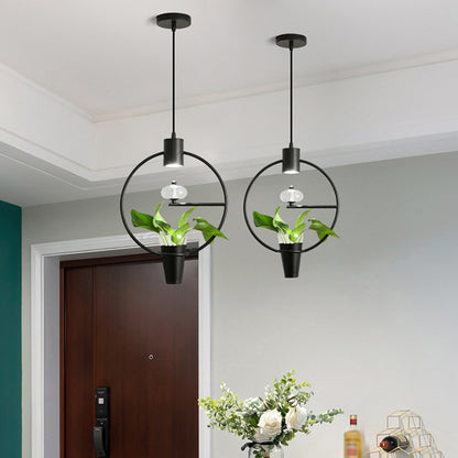 Metal LED Pendulum Light Loft Black/Gold Circle/Oval/Rectangle Dining Room Pendant Lamp with Plant Container Clearhalo 'Art Deco Pendants' 'Black' 'Cast Iron' 'Ceiling Lights' 'Ceramic' 'Crystal' 'Industrial Pendants' 'Industrial' 'Metal' 'Middle Century Pendants' 'Pendant Lights' 'Pendants' 'Rustic Pendants' 'Tiffany' Lighting' 1911194