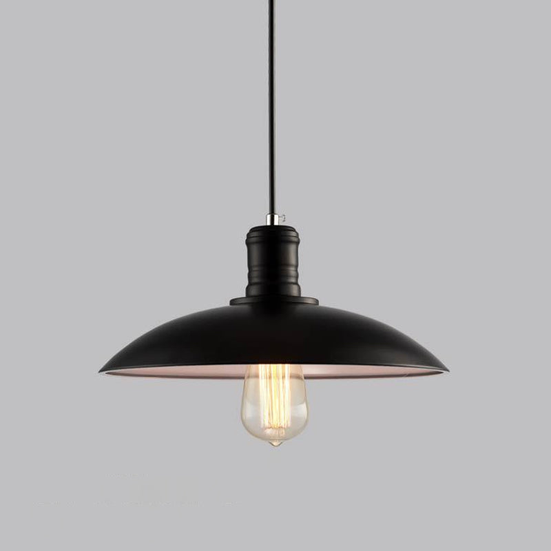 Metallic Shallow Bowl Shade Pendant Lamp Vintage Single-Bulb Living Room Ceiling Hang Light in Black/White Clearhalo 'Art Deco Pendants' 'Black' 'Cast Iron' 'Ceiling Lights' 'Ceramic' 'Crystal' 'Industrial Pendants' 'Industrial' 'Metal' 'Middle Century Pendants' 'Pendant Lights' 'Pendants' 'Rustic Pendants' 'Tiffany' Lighting' 1916738