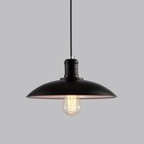 Lampe à suspension métallique à abat-jour en forme de bol peu profond, lampe de plafond vintage à ampoule unique pour salon, noir/blanc