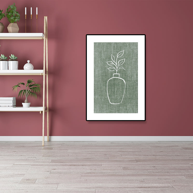 Minimalism Botanical and Vase Painting Green Girls Bedroom Wall Art, Multiple Sizes Clearhalo 'Art Gallery' 'Canvas Art' 'Contemporary Art Gallery' 'Contemporary Art' 'Minimalism' 'Minimalist Art Gallery' 'Scandinavian' Arts' 1709259
