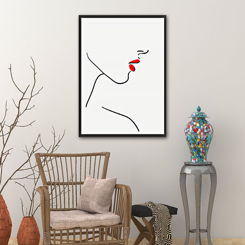 Minimalism Girls'Face Canvas Red Kitchen Wall Art Decor, Multiple Sizes Available Clearhalo 'Art Gallery' 'Canvas Art' 'Contemporary Art Gallery' 'Contemporary Art' 'Minimalism' 'Minimalist Art Gallery' 'Scandinavian' Arts' 1656634