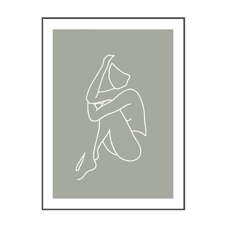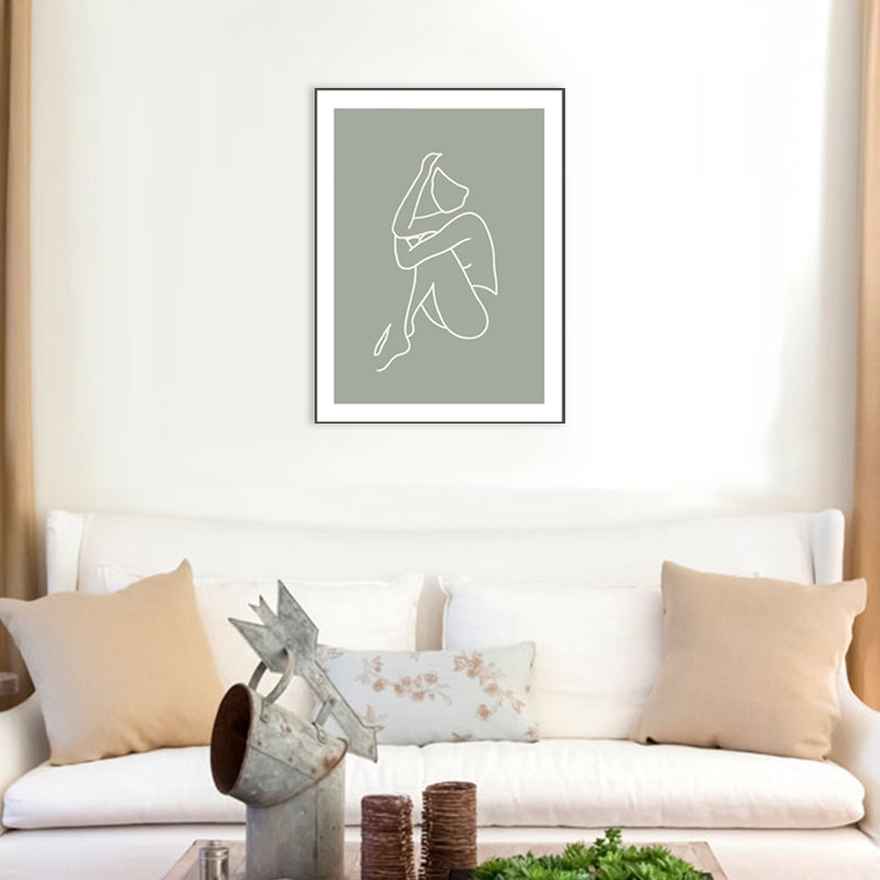 Minimalism Line Drawing Woman Canvas Green-White Textured Wall Art Print for Room Green Clearhalo 'Art Gallery' 'Canvas Art' 'Contemporary Art Gallery' 'Contemporary Art' 'Minimalism' 'Minimalist Art Gallery' 'Scandinavian' Arts' 1727983