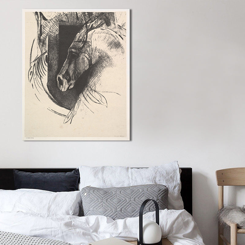 Minimalism Style Horse Head Painting Dark Gray Textured Wall Decor for Dining Room Clearhalo 'Art Gallery' 'Canvas Art' 'Contemporary Art Gallery' 'Contemporary Art' 'Minimalism' 'Minimalist Art Gallery' 'Scandinavian' Arts' 1709346