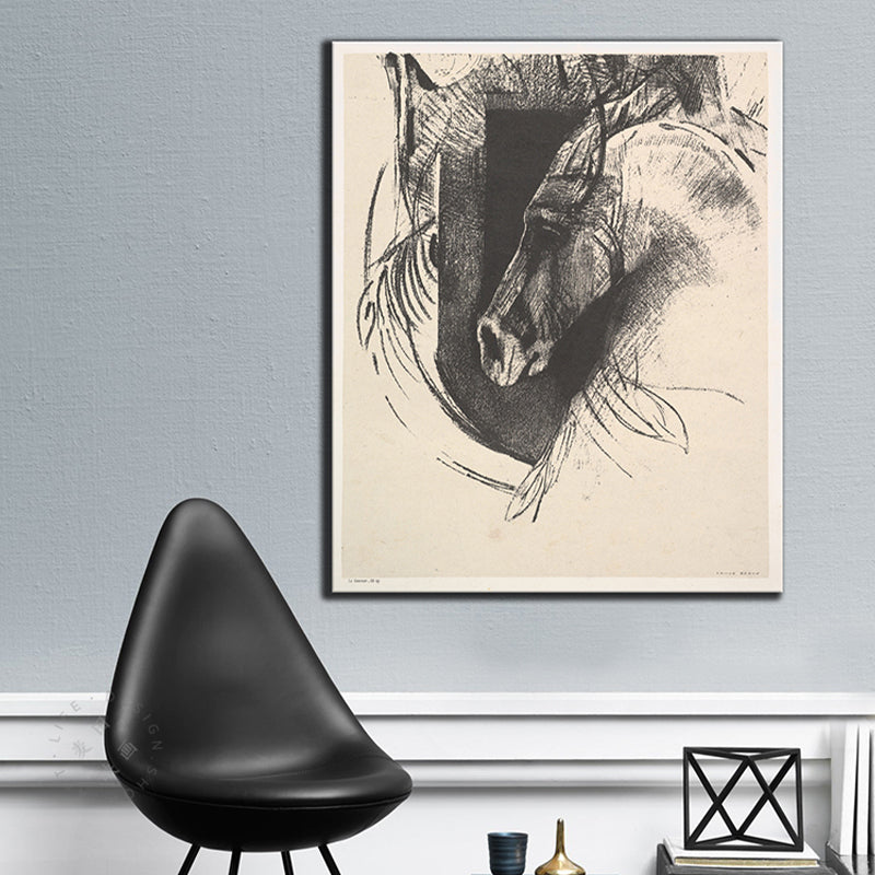Peinture de tête de cheval de Style minimaliste, décor mural texturé gris foncé pour salle à manger
