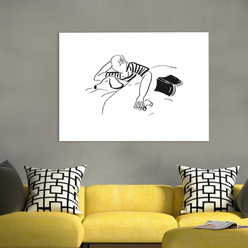 Minimalistic Canvas Art Black-White Man and His Dog Sleeping Pencil Drawing Wall Decor Clearhalo 'Art Gallery' 'Canvas Art' 'Contemporary Art Gallery' 'Contemporary Art' 'Minimalism' 'Minimalist Art Gallery' 'Scandinavian' Arts' 1707195