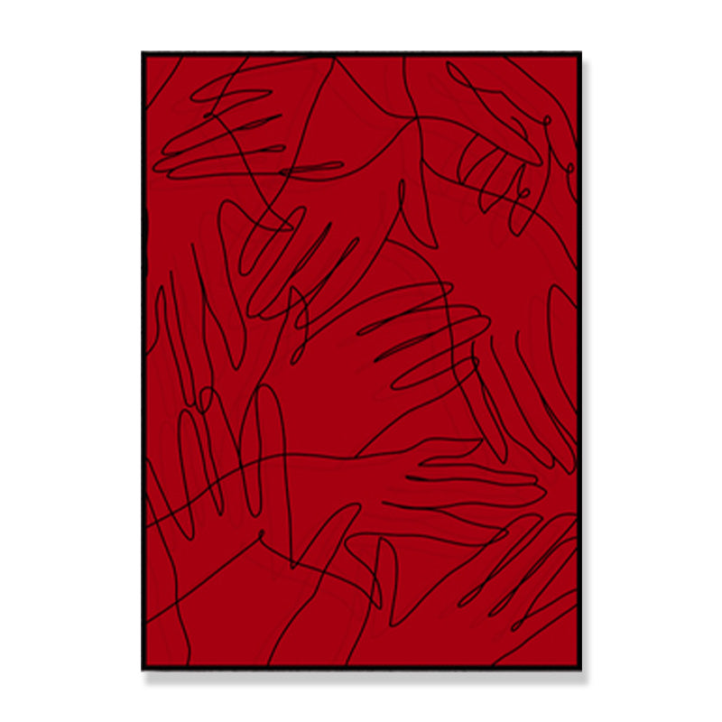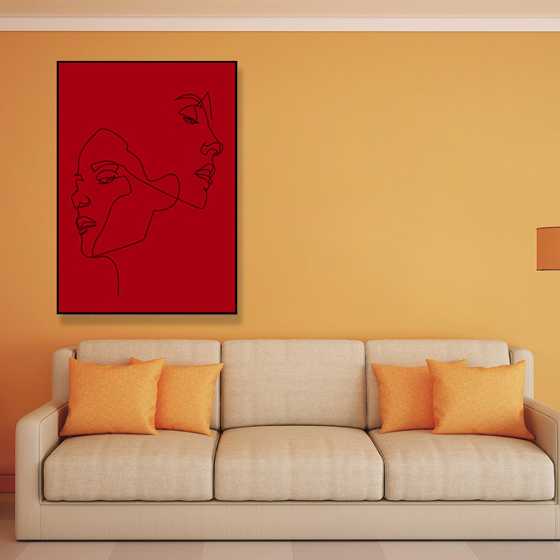 Impression sur toile de dessin au trait minimaliste, Art mural texturé noir et rouge pour chambre à coucher