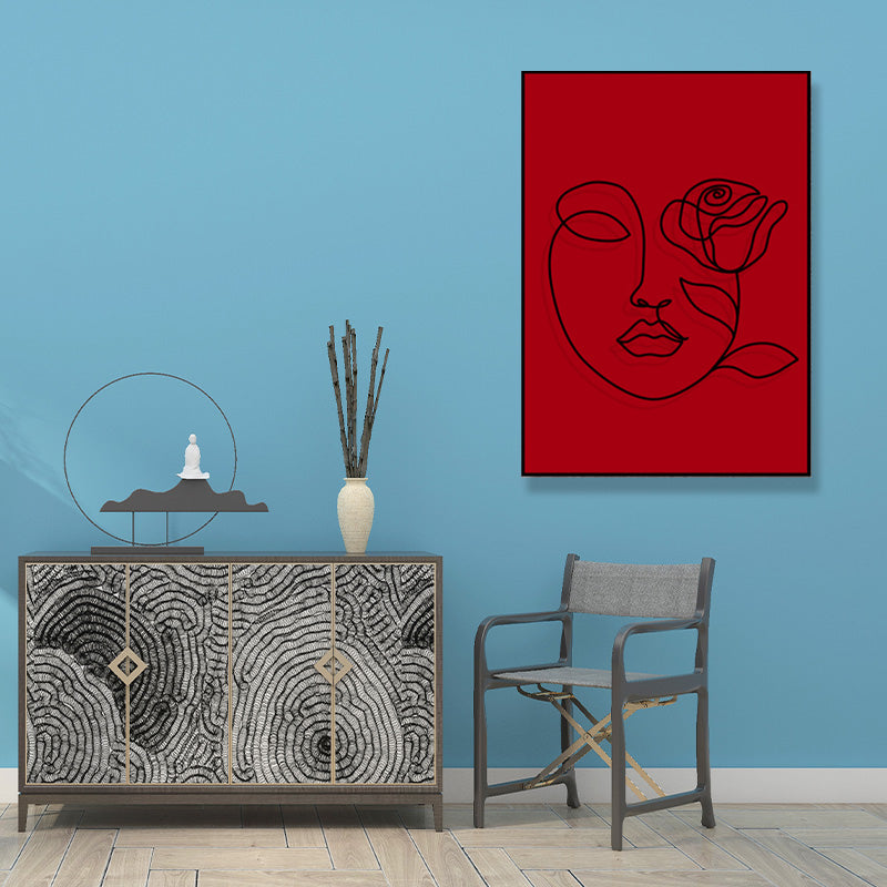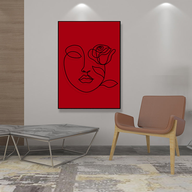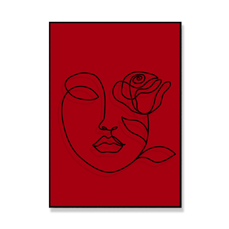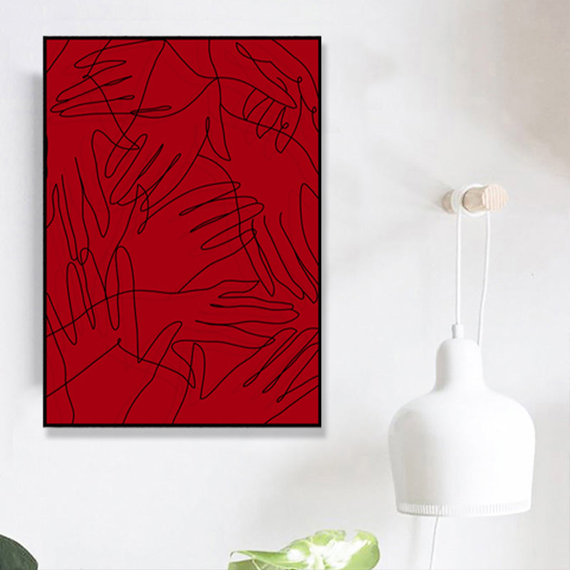 Minimalistic Line Drawing Canvas Print Black and Red Textured Wall Art for Bedroom Clearhalo 'Art Gallery' 'Canvas Art' 'Contemporary Art Gallery' 'Contemporary Art' 'Minimalism' 'Minimalist Art Gallery' 'Scandinavian' Arts' 1705384
