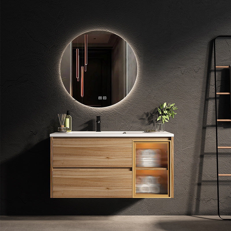 Modern Bathroom Sink Vanity Solid Color Vanity Cabinet with Mirror Clearhalo 'Bathroom Remodel & Bathroom Fixtures' 'Bathroom Vanities' 'bathroom_vanities' 'Home Improvement' 'home_improvement' 'home_improvement_bathroom_vanities' 6311949
