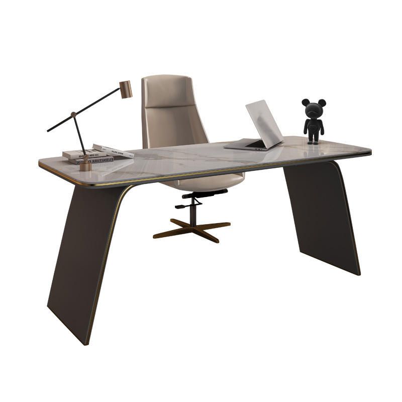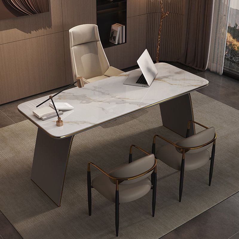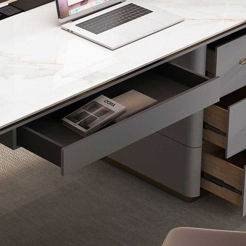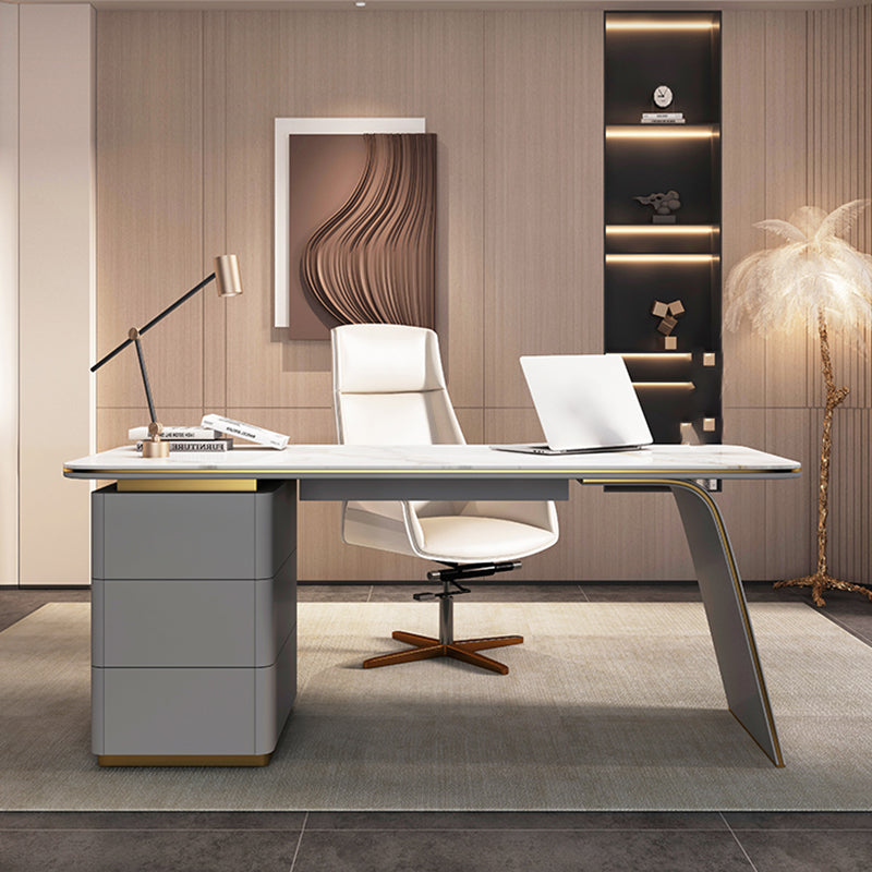 Bureau de bureau en pierre moderne bureau de tâche de forme rectangulaire avec 4 dessins en blanc