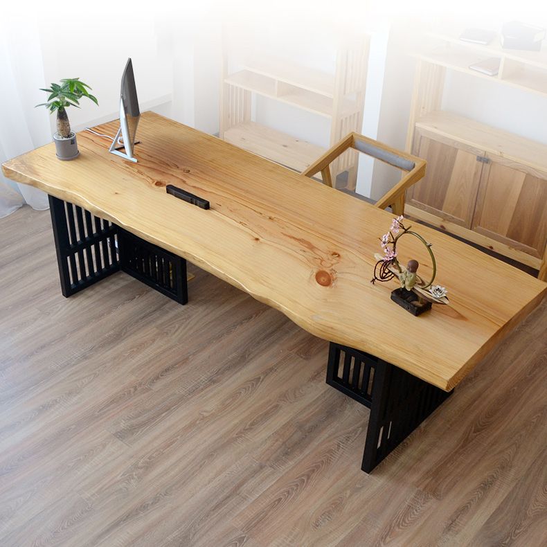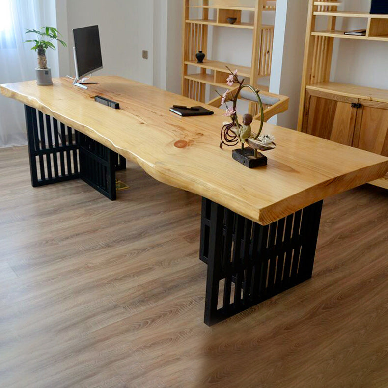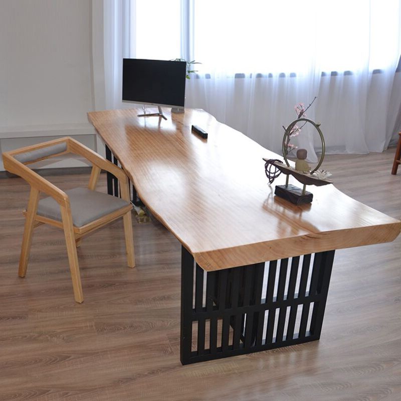 Bureau de bureau naturel et noir bureau industriel avec des jambes en métal