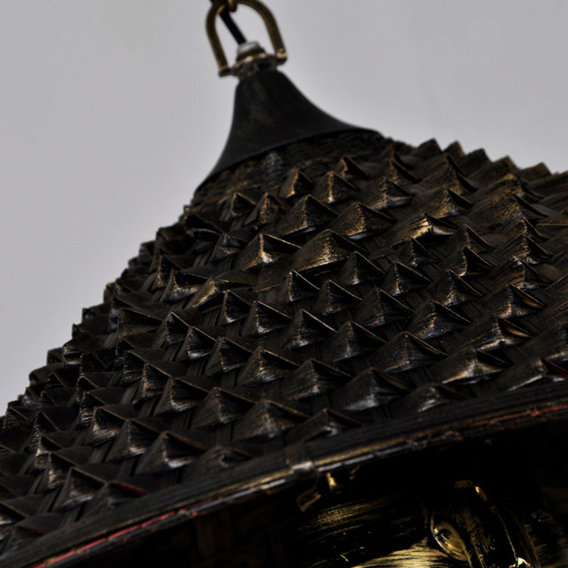 Plafonnier rustique en verre opale au kérosène, 1 ampoule, luminaire suspendu pour allée, avec pompon et chapeau conique, noir