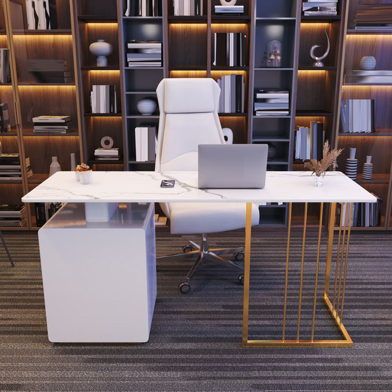 Bureau d'écriture blanc piédestal 23,6 "bureau rectangulaire de large pour la maison