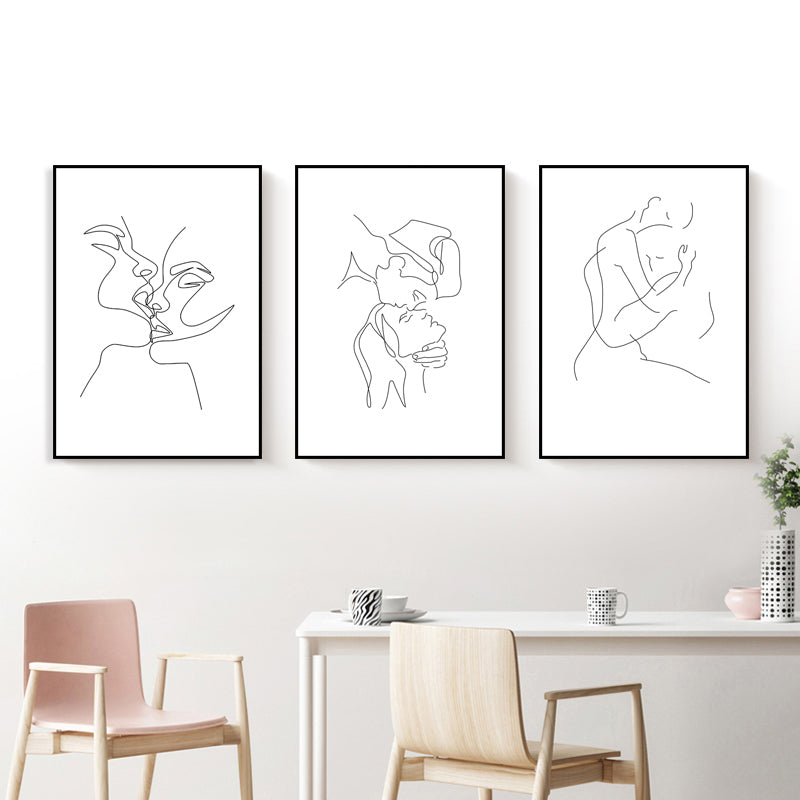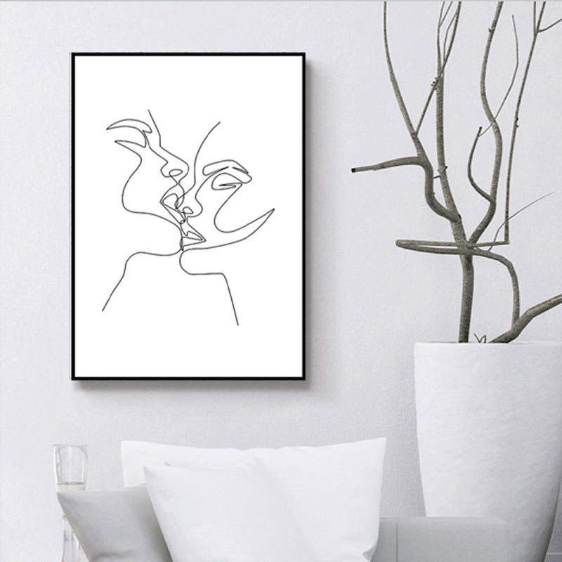 Pencil Line Drawing Wall Art in Black and White Canvas Print Wall Decor, Textured Clearhalo 'Art Gallery' 'Canvas Art' 'Contemporary Art Gallery' 'Contemporary Art' 'Minimalism' 'Minimalist Art Gallery' 'Scandinavian' Arts' 1707990