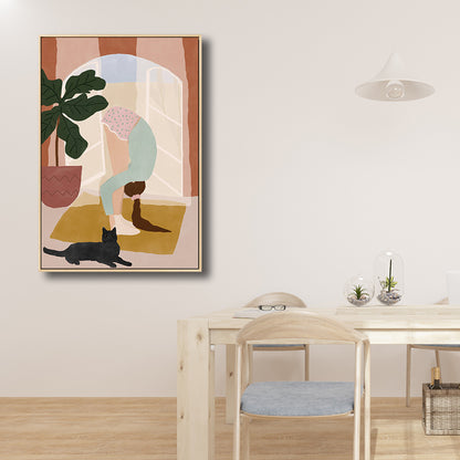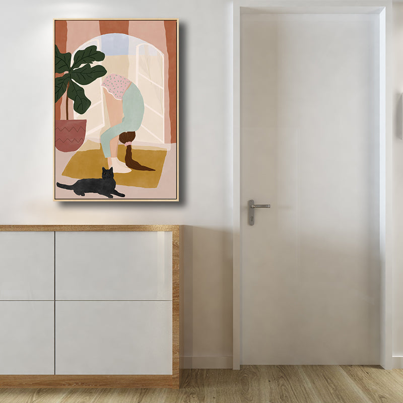 Pink Exercise Girl Canvas Minimalism Style Textured Wall Art Print for Living Room Pink Clearhalo 'Art Gallery' 'Canvas Art' 'Contemporary Art Gallery' 'Contemporary Art' 'Minimalism' 'Minimalist Art Gallery' 'Scandinavian' Arts' 1705208