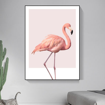 Pink Flamingo Canvas Art Textured Tropical Girls Bedroom Wall Decor, Multiple Sizes Pink Clearhalo 'Art Gallery' 'Canvas Art' 'Coastal Art Gallery' 'Tropical' Arts' 1766119