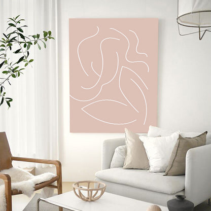 Pink Nude Woman Wall Art Line Drawing Minimalistic Bedroom Canvas Print for Room Clearhalo 'Art Gallery' 'Canvas Art' 'Contemporary Art Gallery' 'Contemporary Art' 'Minimalism' 'Minimalist Art Gallery' 'Scandinavian' Arts' 1728321