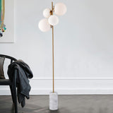 Postmodern 4-Head Floor Light Brass Globe Stand Up Lamp with White Glass Shade for Living Room Clearhalo 'Floor Lamps' 'Lamps' Lighting' 2353512