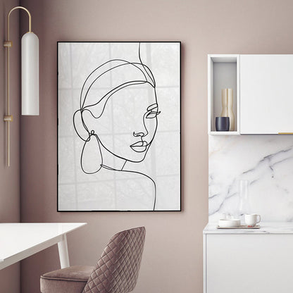 Pretty Woman Face Wall Art Girls Bedroom Line Drawing Canvas Print in Black-White Clearhalo 'Art Gallery' 'Arte de Lienzo' 'Arte' 'Canvas Art' 'Contemporary Art Gallery' 'Contemporary Art' 'Hogar' 'Minimalism' 'Minimalist Art Gallery' 'Scandinavian' Arts' 1706066