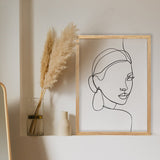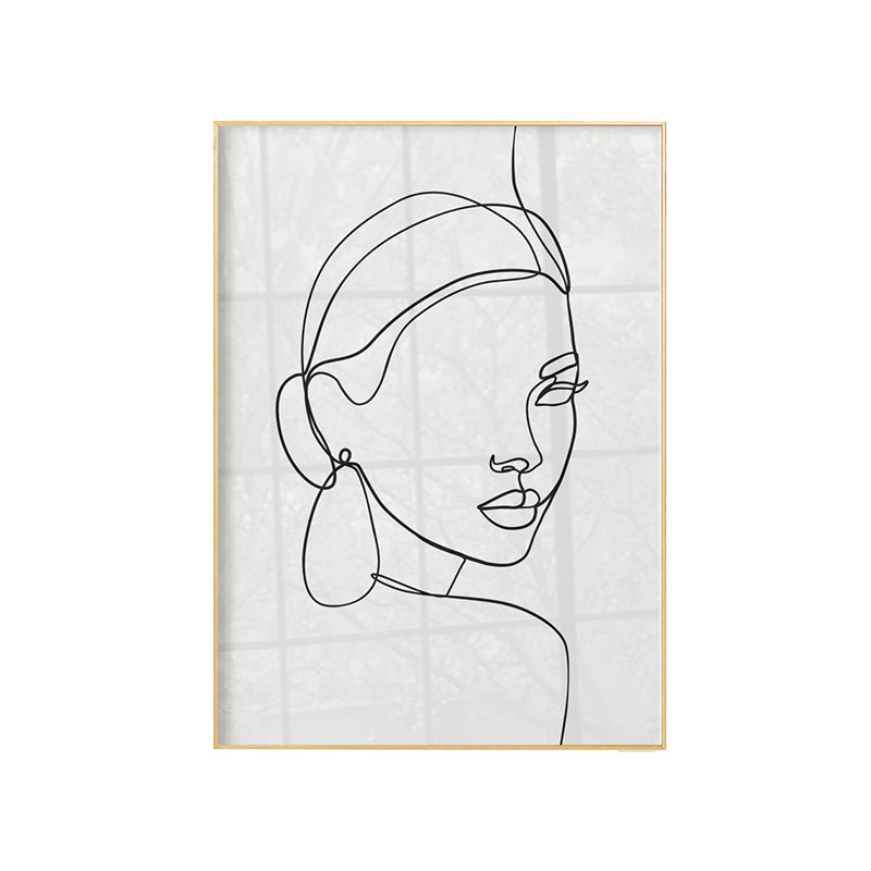 Jolie femme visage Art mural filles chambre dessin au trait impression sur toile en noir-blanc