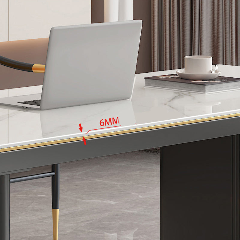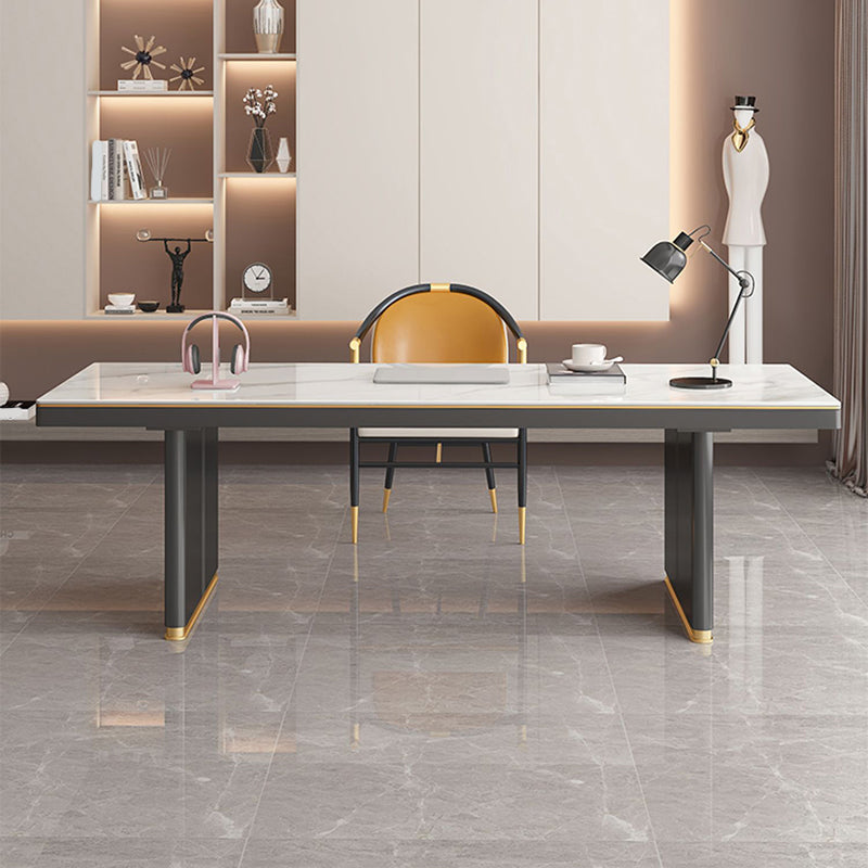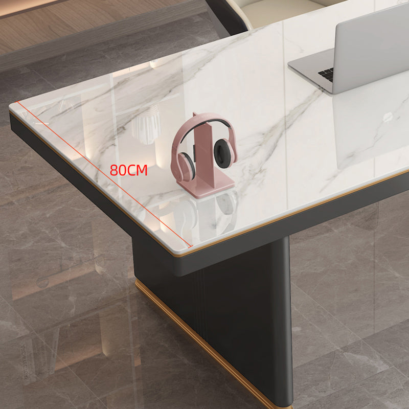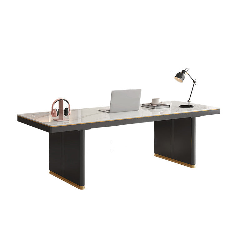 Forme rectangulaire Bureau contemporain Bureau en pierre Tâche de tâche avec 2 jambes en blanc et noir