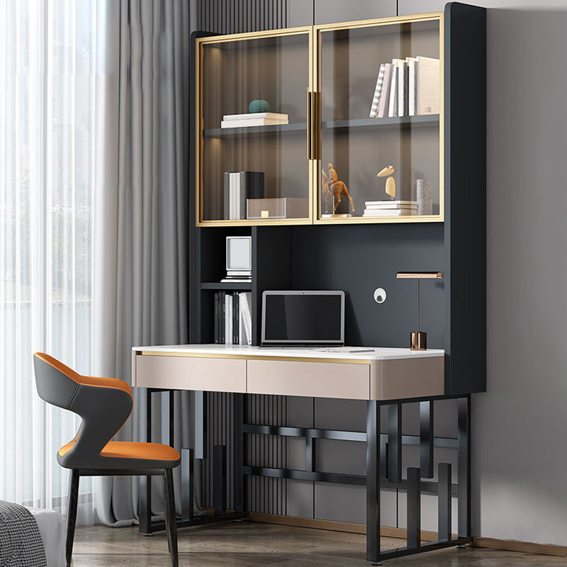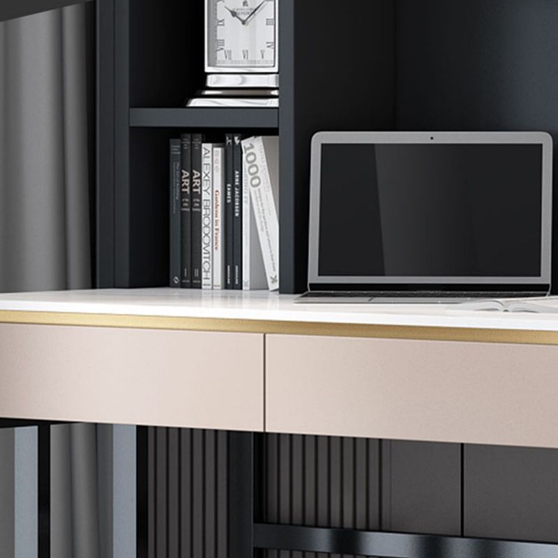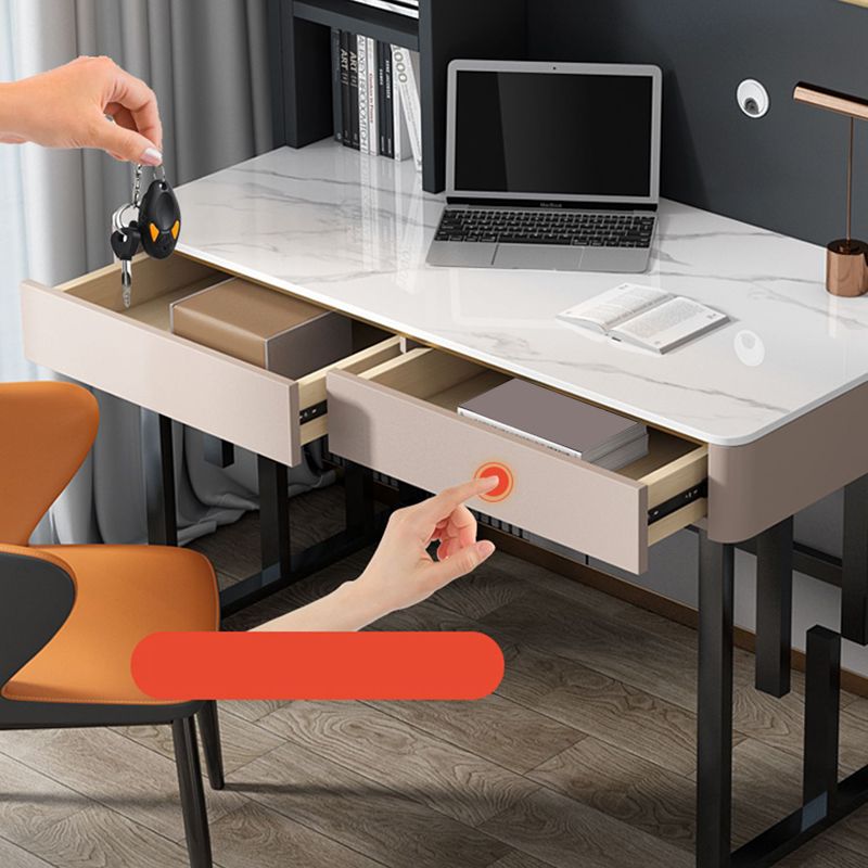 Bureau de bureau moderne de forme rectangulaire Bureau d'écriture en pierre en blanc / gris