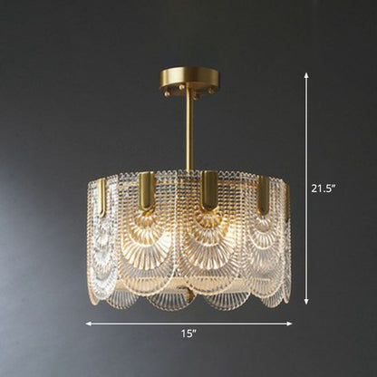 Ribbed Crystal Scalloped Round Chandelier Pendant Light Contemporary Brass Hanging Light 6 Brass Clearhalo 'Ceiling Lights' 'Chandeliers' 'Modern Chandeliers' 'Modern' Lighting' 2255746