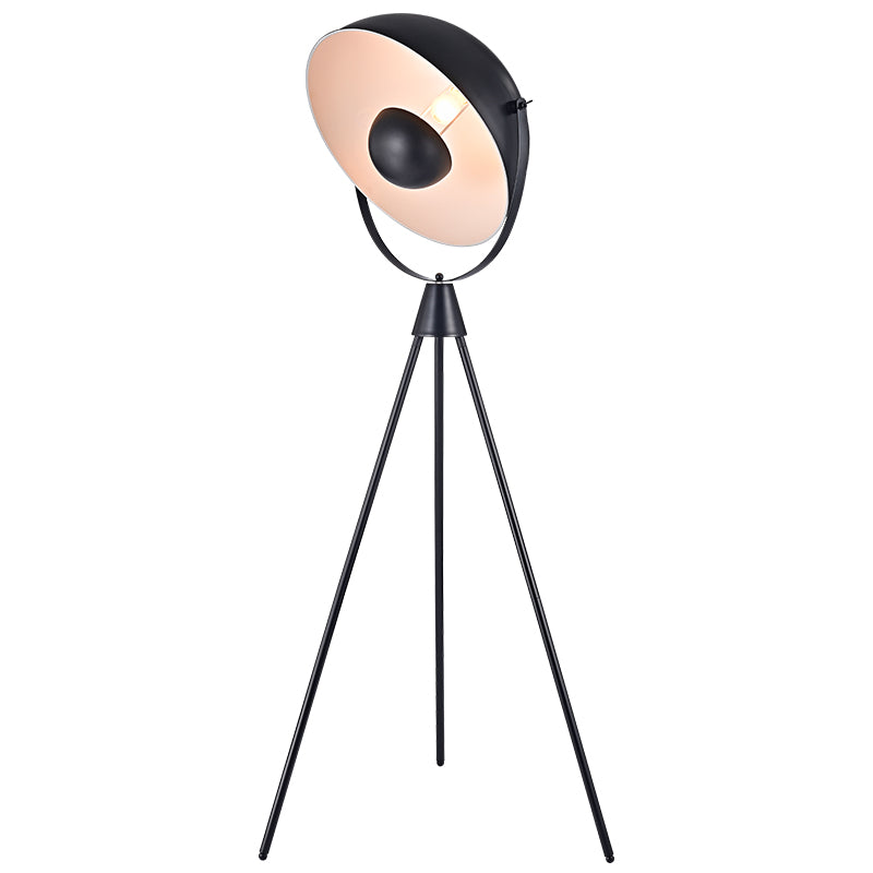 Lampadaire hémisphère rotatif en métal, lampe sur pied vintage avec trépied pour chambre à coucher, 1 ampoule, noir