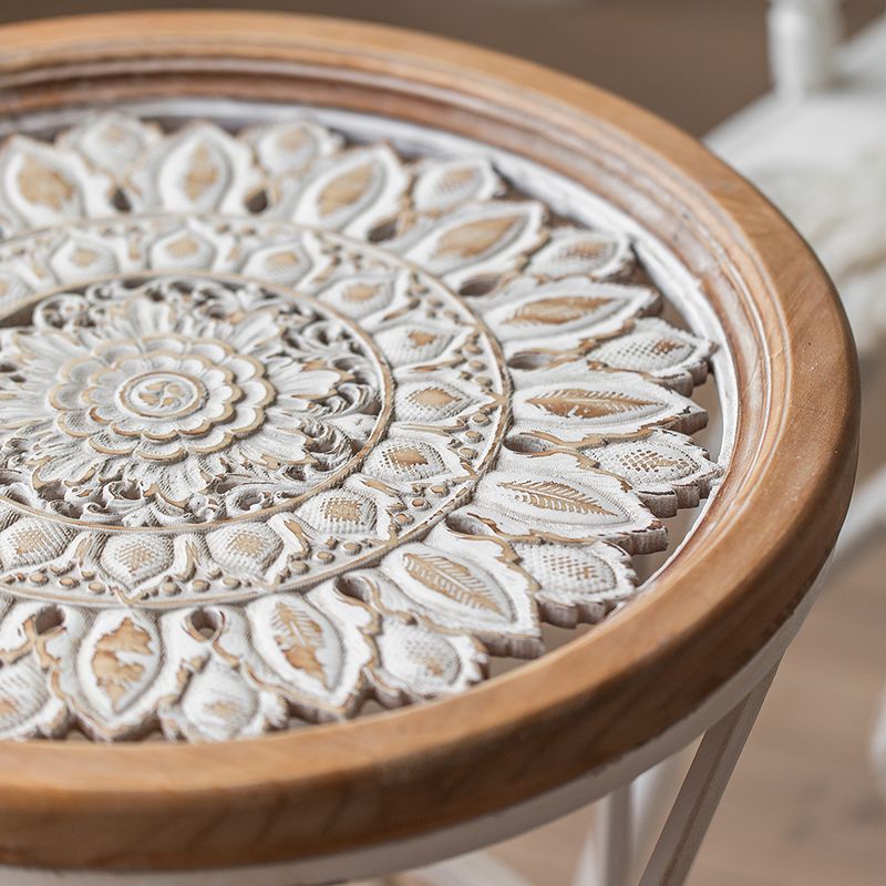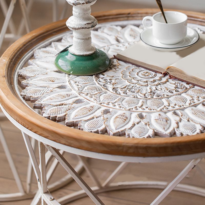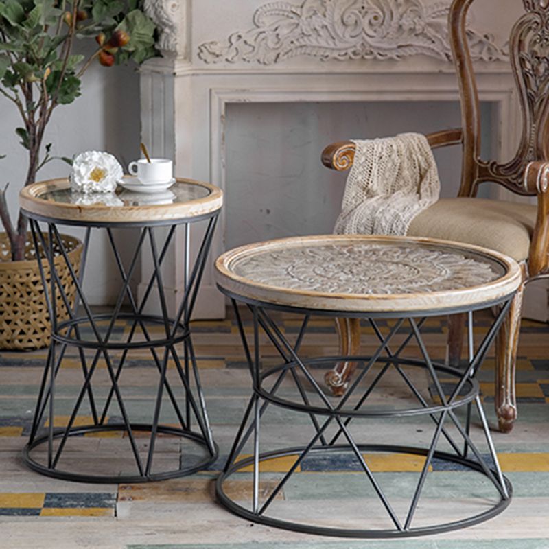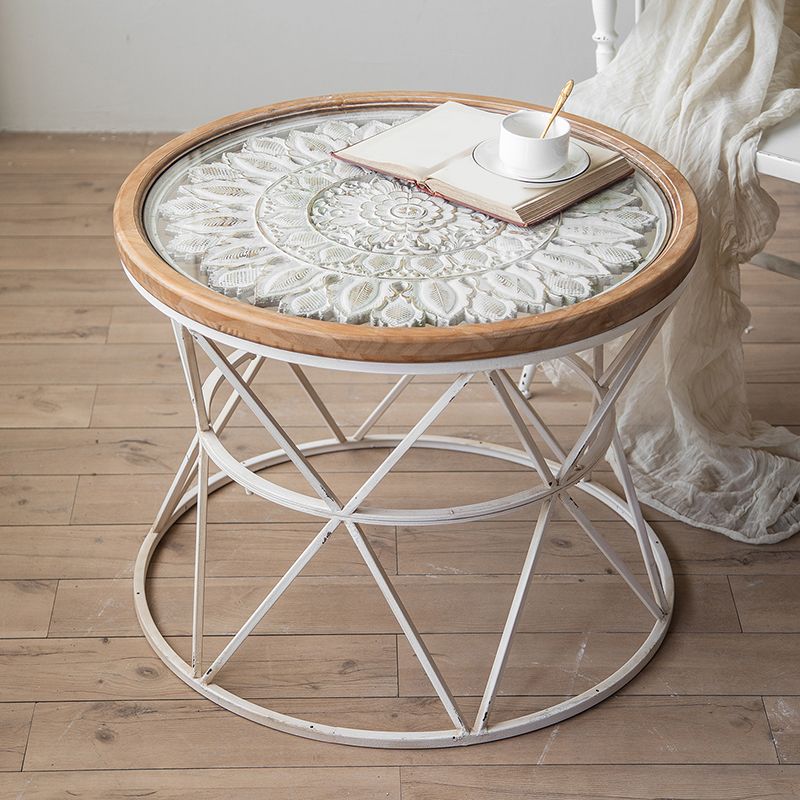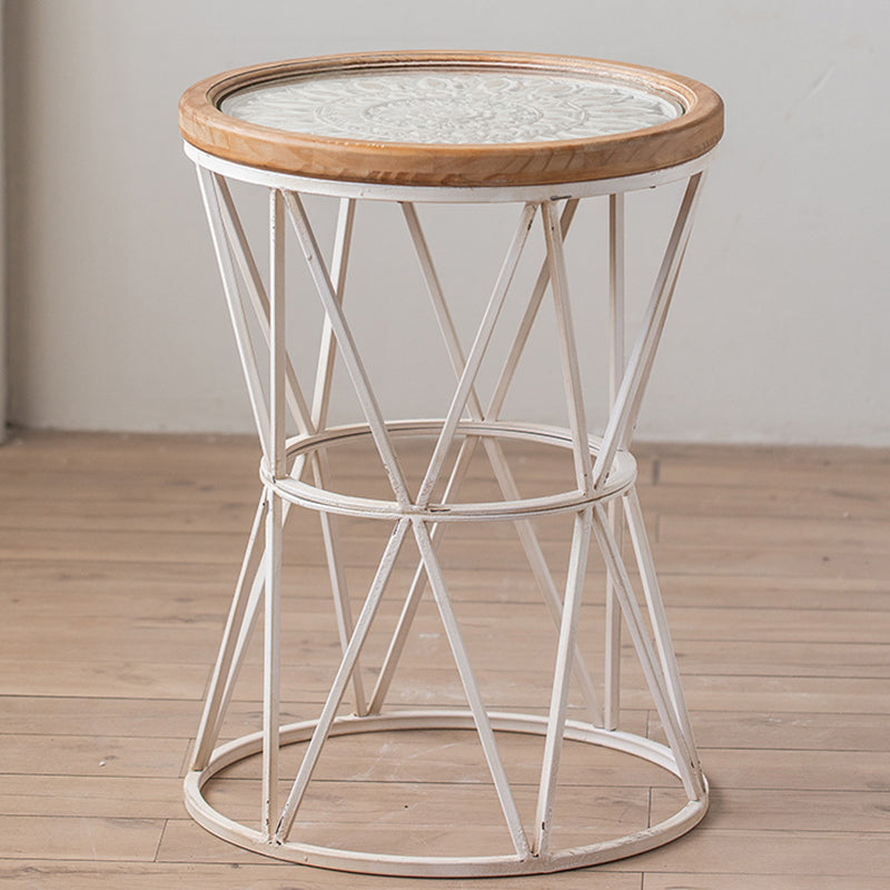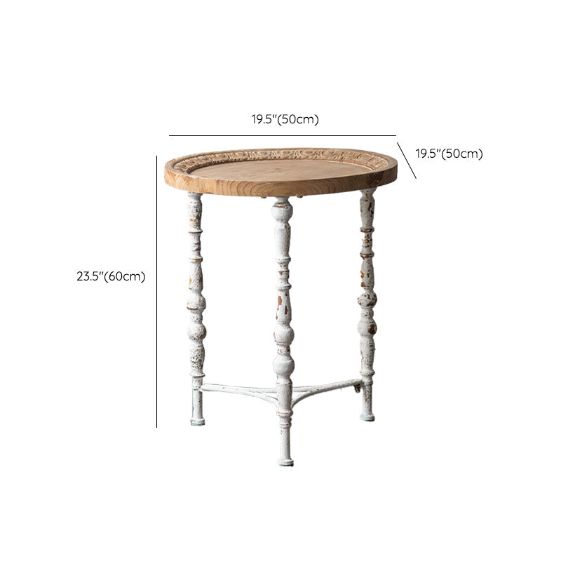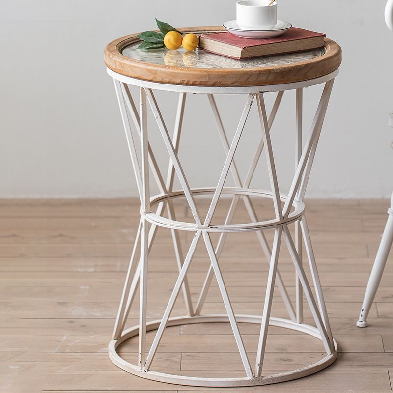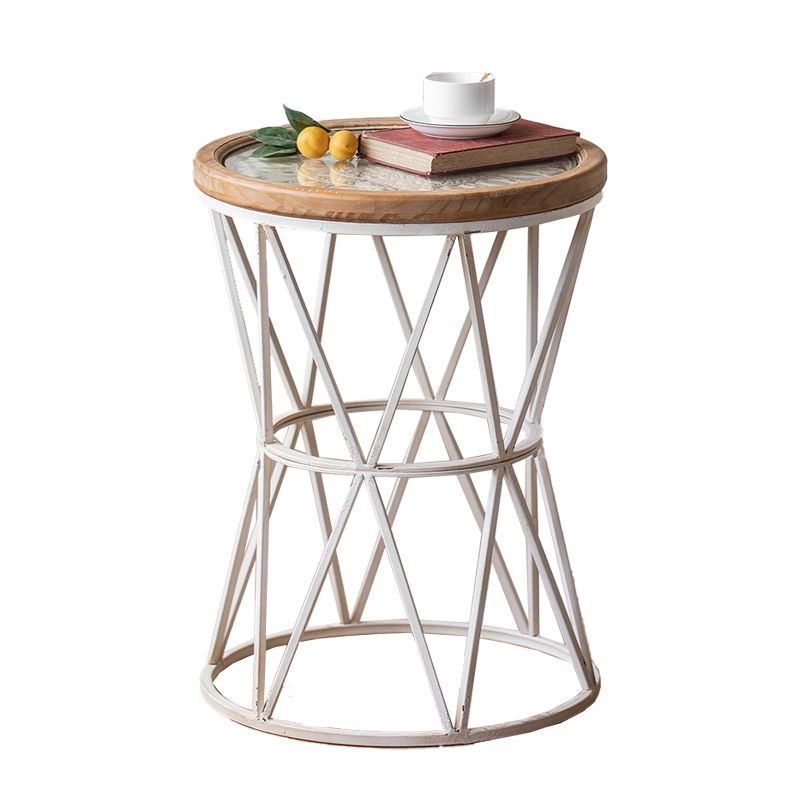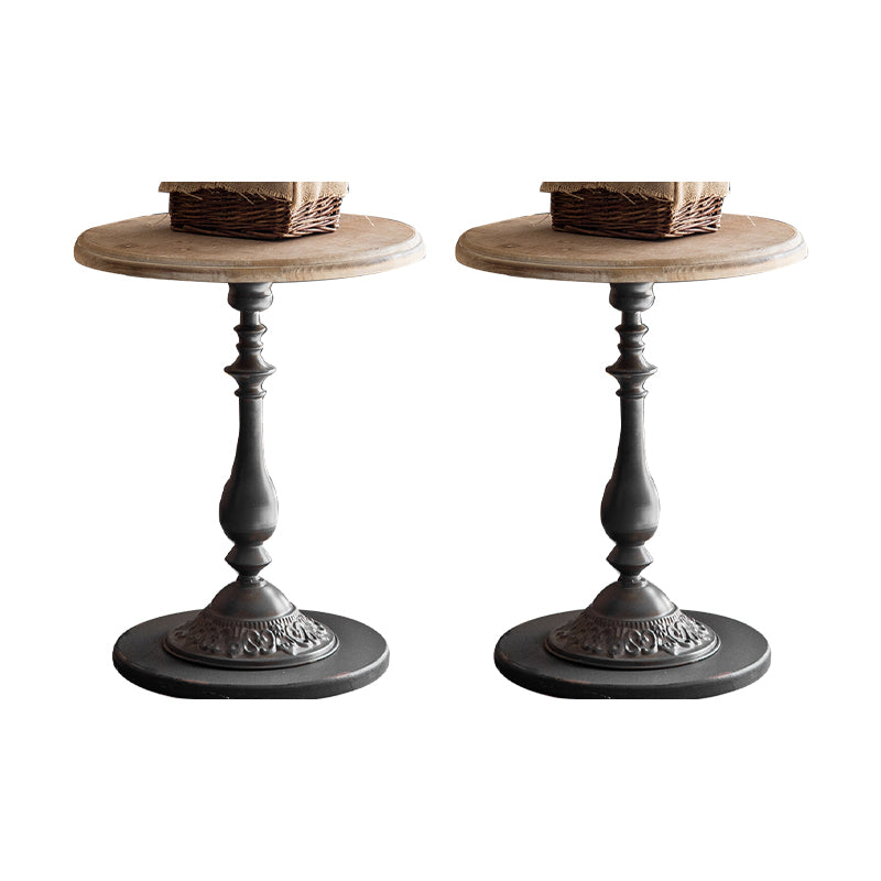 Table d'extrémité en bois massif de forme ronde avec table d'angle de base en métal pour le salon