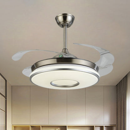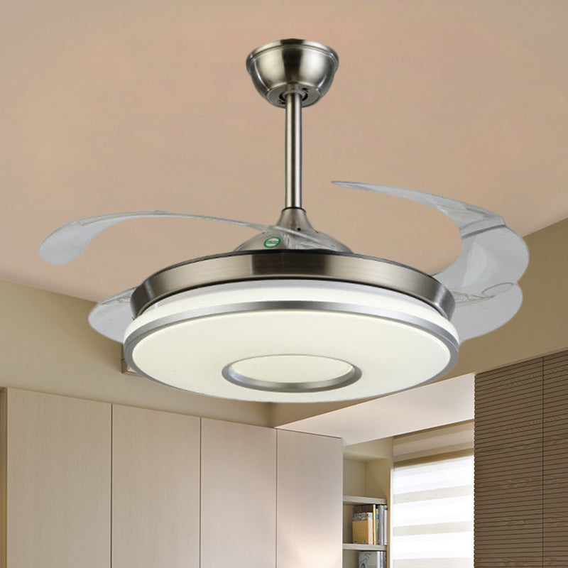 Silver Round Panel Ceiling Fan Lamp Simplicity LED Acrylic Semi Flush Mount Lighting with 4 Blades, 42" W Clearhalo 'Ceiling Fans with Lights' 'Ceiling Fans' 'Modern Ceiling Fans' 'Modern' Lighting' 1289941